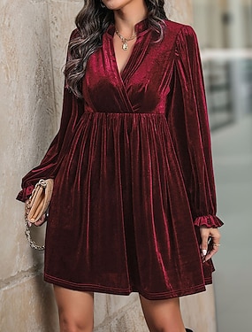 Per donna Mini Abito Abito in Velluto Vestito da Festa Elegante Moda Moderno Feste Occasione speciale Vestibilità regolare Semplice Manica Lunga Scollo a V Blu Vino Arancione Verde Autunno Inverno