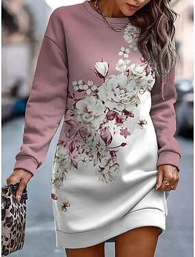 Per donna Mini Abito Abito a Tubino Casual Ferie Uscire Weekend Vestibilità regolare Floreale Grafico Manica Lunga Girocollo Rosa Viola Verde Grigio Primavera Autunno Inverno