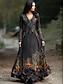 Per donna Abito maxi Abito a trapezio Abito Pieghettato Abito aderente e svasato Boho Data Vestibilità regolare Floreale Grafico Manica Lunga Scollo a V Nero Primavera Autunno Inverno