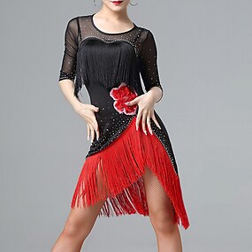 abito da ballo latino nappa con frange giunzione solida prestazione di allenamento da donna manica corta alta spandex