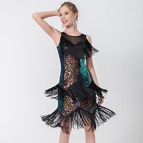Balli latino-americani Abbiglimamento balli esotici Abito Lustrini Nappa Con ruche Per donna Prestazioni Addestramento Senza maniche Alto Poliestere