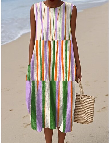 Per donna Abito Midi Vestito Estivo Abito a Tubino Abito a trapezio Vacanza Casual Boho Spiaggia Uscire Vestibilità comoda Grafico Geometrico Astratto Senza Maniche Girocollo Blu Nero Viola chiaro