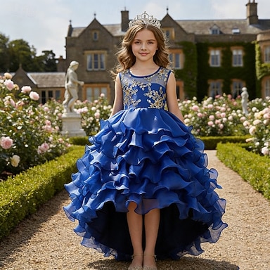 Abito da damigella d'onore bambina Ragazze Abito formale Abiti da sposa Feste Matrimonio Formale Principessa Patchwork Rete Floreale Senza Maniche Girocollo Blu Grigio Dai 4 anni in su
