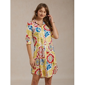 Per donna Abito Midi Vestito T-Shirt Vacanza Compleanno Casual Spiaggia Uscire Vestibilità comoda Grafico Astratto Manica Lunga Bavero Blu Rosa scuro Verde Estate Primavera
