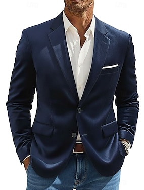 Per uomo Giacca blazer Blazer di Lino Colletto ad incastro Moda Leggero Casual A righe Tinta unita Blazer Blazer in lino Nero Blu scuro Vestibilità su misura Monopetto Due Bottoni
