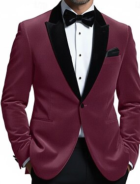 Per uomo Giacca blazer Tuxedo Collo a scialle Natale Vintage Velluto Tinta unita Blazer Rosso Vestibilità standard Monopetto Un Bottone