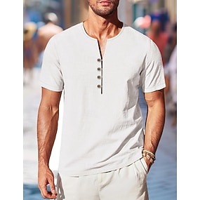 Per uomo Camicia camicia di lino Camicia estiva Camicia da spiaggia Tinta unica Informale Giornaliero Nero Bianco Manica corta Rotonda Estate Primavera Abbigliamento