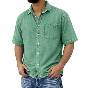 Per uomo Camicia Camicia casual Camicia con Bottoni Camicia 100% cotone lavaggio acido Blu Nero Verde chiaro Viola Verde Manica Corta Semplice Colletto a Camicia Casuale Quotidiano Tasca Frontale
