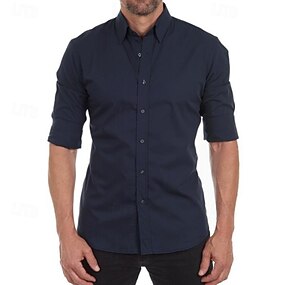 Per uomo Camicia Maglietta informale Camicia con bottoni Bianco Verde chiaro Rosa Blu marino Verde scuro Manica lunga Tinta unica Colletto Giornaliero Per uscire Abbigliamento Di tendenza Informale