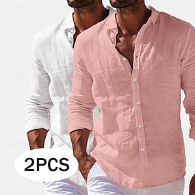 Per uomo camicia di lino Camicia estiva Abbigliamento mare Maglietta informale Camicia con bottoni Liscio Da mare Informale Nero Bianco Rosa Verde Manica lunga Bavero Primavera estate Abbigliamento