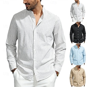 Per uomo Camicia Camicia di lino Camicia elegante Strisce verticali Quotidiano All'aperto Nero Bianco Kaki Azzurro cielo Manica Lunga Colletto alla coreana Estate Primavera Abbigliamento Bottoni