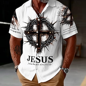 Per uomo Croce Gesù Religione Camicia Camicia con Bottoni Camicia casual Manica Corta Vintage Retrò Abbigliamento casual alla moda Vacanza Primavera Autunno Collo ripiegato Stampa 3D camicie con
