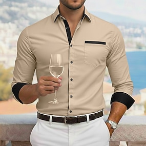 Per uomo Camicia Camicia elegante Camicia button-down Camicia non stiro Camicia con Bottoni Blocco di colori Casuale Quotidiano Blu chiaro Bianco Vino Kaki Manica Lunga Collo ripiegato Primavera