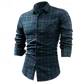 Per uomo Camicia Camicia di flanella Sovracamicia A quadri Esterno Strada Giallo Rosso Blu marino scuro Verde Manica lunga Inverno Primavera & Autunno Abbigliamento