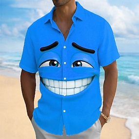 Per uomo Illusione ottica Fantasia "Cartone 3D" Faccia Sorridente Camicia Camicia con Bottoni Manica Corta Divertente Quotidiano Vacanza Estate Primavera Collo ripiegato Stampa 3D camicie con colletto