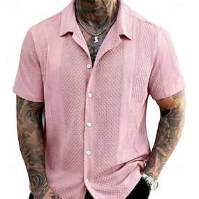 Per uomo Camicia Camicia casual Camicia con Bottoni Camicia Jacquard Nero Bianco Rosa Blu marino Albicocca Manica Corta Semplice Colletto a Camicia Casuale Quotidiano Bottoni Abbigliamento Elegante
