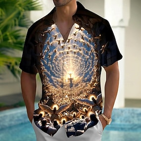 Venerdì Santo Per uomo Angelo Gesù Religione Camicia Camicia Estiva Camicia con Bottoni Manica Corta Vintage Retrò Ferie Casual Quotidiano Estate Primavera Collo ripiegato Stampa 3D camicie con