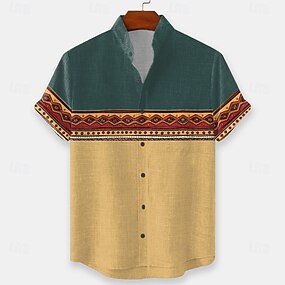 Per uomo Geometrico Nativo americano Etnico Camicia Camicia con Bottoni Camicia con colletto alla coreana Manica Corta Vintage Retrò Vacanza Abbigliamento Quotidiano Abbigliamento mare Estate