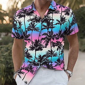 Per uomo Albero di Cocco Colore sfumato Piante Tropicali Camicia hawaiana estiva Camicia con Bottoni Camicia Aloha Manica Corta Hawaiano Vacanza Abbigliamento mare Estate Primavera Collo ripiegato