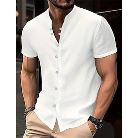 Per uomo Camicia Camicia di lino Camicia Estiva Abbigliamento da spiaggia Camicia con colletto alla coreana Camicia con Bottoni Semplice Vacanza Casuale Nero Bianco Giallo Blu Manica Corta Colletto