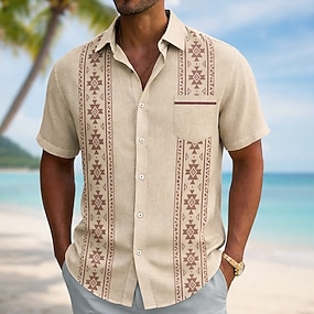 Per uomo Geometrico Azteco Etnico Camicia Camicia Estiva Camicia con Bottoni Manica Corta Vintage Retrò Quotidiano Vacanza al Mare Estate Collo ripiegato Stampa 3D Una tasca anteriore Camicia tipo