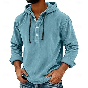 Per uomo Camicia Camicia casual Camicia di Velluto a Coste Blu marino Grigio chiaro Grigio scuro Azzurro Manica Lunga Semplice Con Cappuccio Casuale Quotidiano Con cappuccio Abbigliamento Vintage