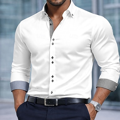 Camicia casual da uomo per uso quotidiano completi per il ritorno a casa vestibilità standard maniche lunghe colletto colore uniforme poliestere nero bianco grigio 2025