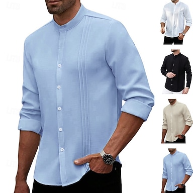 Per uomo Camicia Camicia elegante Camicia con Bottoni Semplice All'aperto Affari Nero Bianco Azzurro cielo Kaki Manica Lunga Collo alla coreana Estate Primavera Abbigliamento Bottoni