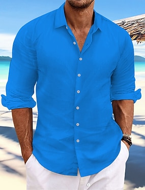 Per uomo Camicia di lino Camicia Estiva Abbigliamento da spiaggia Camicia casual Camicia con Bottoni Semplice Vacanza Casuale Giallo Chiaro Bianco Rosa Blu marino scuro Manica Lunga Primavera & Estate