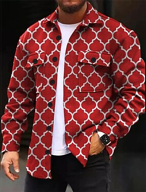 Per uomo Geometria Camicia Giacca da camicia Sovracamicia Manica lunga Informale Esterno Strada Casual / quotidiano Autunno inverno Collo ripiegabile Bottoni Tasche Stampa Nero Rosso Blu Viola
