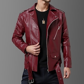 Per uomo Giacca di pelle sintetica Giacca da motociclista Giacca in pelle rossa Athleisure Da tutti i giorni Fibbia Per tutte le stagioni Tinta unita / tinta unita Moda stile punk Informale Bavero