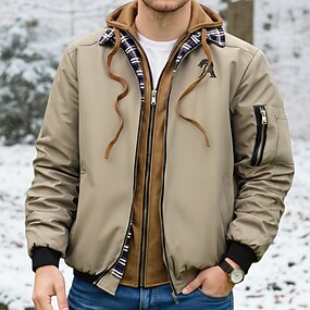 Per uomo Giacca Giacca Casual All'aperto Vacanza Caldo Cerniera Tasca Autunno Inverno Semplice Moda Streetwear Colletto Mao Regolare Nero Cachi Verde militare Beige Giacca