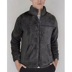 Per uomo Giacca in pile Cappotto teddy Giacca con cappuccio Giornaliero Da mare Tenere al caldo Tasche Vello Autunno inverno Liscio Di tendenza Streetwear Con cappuccio Standard Nero Blu marino Cachi