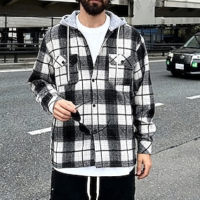 Per uomo Giacca Leggera Giacca Camicia Giacca Casual All'aperto Streetwear Tasca Bottoni Primavera Autunno Plaid Streetwear Quotidiano Collo ripiegato Regolare Nero Bianco Borgogna Verde Cachi Giacca