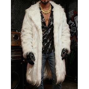 Per uomo Giacca Casual Cappotto in Pelliccia Sintetica Casuale Quotidiano Felpato Autunno Inverno Tinta unica Streetwear Quotidiano Dentellato Lungo Bianco Giallo Marrone Grigio Giacca
