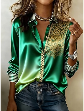 Per donna Camicia Camicia in raso Stampato Floreale Grafico Bohemien Vintage Classico Manica Lunga Colletto a Camicia Top Regolari Quotidiano Ferie Uscire Bianco Oro Verde Cachi Estate Primavera