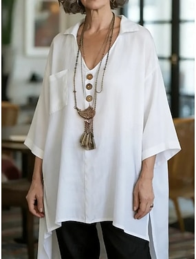 Per donna Blusa Camicia in finto lino Orlo asimmetrico Tinta unica Elegante Casual Manica Lunga Girocollo Top lunghi Quotidiano Bianco Albicocca Grigio Estate Primavera Autunno