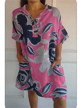 Per donna Mini Abito Finto cotone e lino Abito Camicia Vestito Casual Casual Vestibilità aderente Grafico Stampa Mezza Manica Bavero Blu Bianco Giallo Rosa Estate Autunno