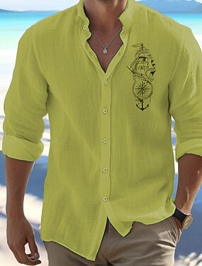 Per uomo Camicia Camicia da Spiaggia Camicia con Bottoni Bussola All'aperto Vacanza Nero Bianco Rosa Arancione Manica Lunga Colletto Mao Primavera & Autunno Abbigliamento Stampato