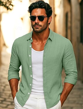 Per uomo Camicia Camicia di lino Camicia Estiva Camicia da Spiaggia Tinta unica Vacanza Casuale Nero Bianco Verde Cachi Manica Lunga Scollo a V Estate Primavera Abbigliamento Base