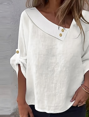 Per donna Camicia Camicia casual Camicia con Bottoni Finto cotone e lino Bottoni Tinta unica Semplice Vacanza Moda Quotidiano Collare Peter Pan Top Regolari Abbigliamento casual alla moda Spiaggia