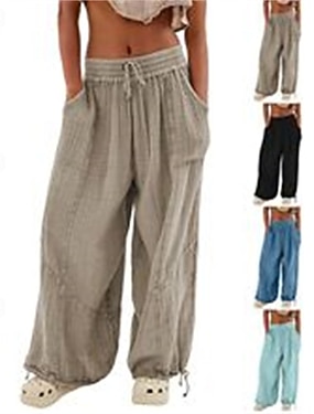 Per donna Pantaloni in cotone e lino Pantaloni Estivi Pantaloni Pantaloni Palazzo Moda Streetwear Comfort Lunghezza intera Vita Alta Semplice Coulisse Elastico in vita Coulisse alla gamba Comodo
