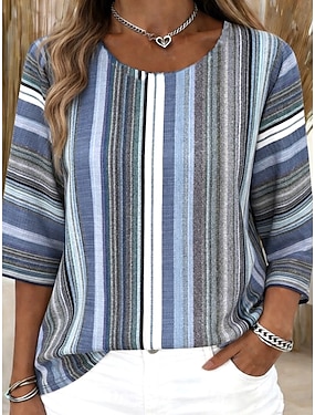 Per donna Blusa Stampato A strisce Grafico Geometrico A righe Bohemien Tropicale Elegante Manica 3/4 Mezza Manica Girocollo Top Regolari Quotidiano Abbigliamento da vacanza Blu Estate Primavera