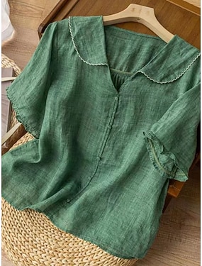 Per donna Blusa Camicia di cotone Finto cotone e lino Volant Tinta unica Quotidiano Elegante Essenziale Manica 3/4 Scollo a V Top Regolari Quotidiano Blu Nero Bianco Rosso Verde Estate Primavera