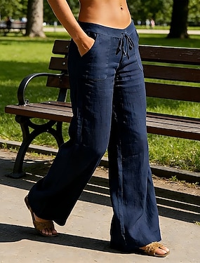 Per donna Pantaloni capri Finto cotone e lino Gamba larga Chinos Vacanza Moda Streetwear Lunghezza intera Vita Alta Tinta unica Tasca Fascia Elastica Comodo Morbido Confortevole Micro-elastico