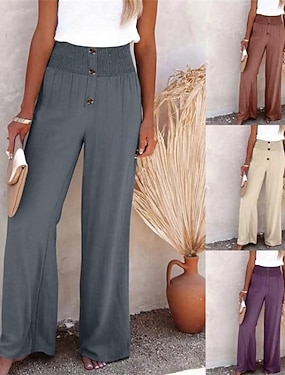 Per donna Pantaloni in cotone e lino Chinos Pantaloni Estivi Vacanza Essenziale Casual Lunghezza intera Vita Alta Semplice Tasca Fascia Elastica Comodo Comodità Morbido Micro-elastico Quotidiano