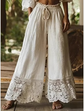 Per donna Finto cotone e lino Gamba larga Chinos Pantaloni Estivi Vacanza Moda Streetwear Lunghezza intera Vita Alta Semplice Pizzo Tasca Fascia Elastica Comodo Comodità Morbido Elasticizzato