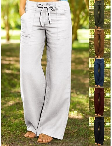 Per donna Finto cotone e lino Gamba larga Chinos Pantaloni Estivi Streetwear Essenziale Casual Lunghezza intera Vita media Semplice Tasca Comodo Comodità Inelastico Quotidiano All'aperto Streetwear