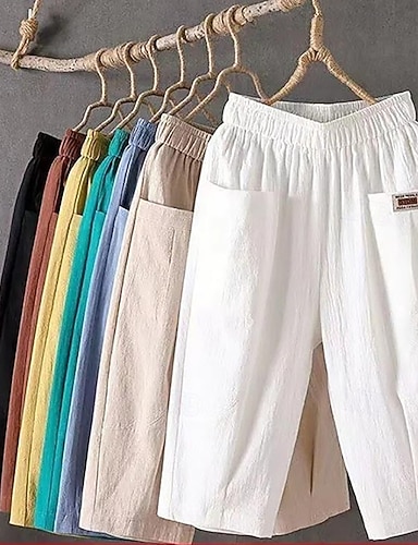 Per donna Pantaloni capri Pantaloni in cotone e lino Pantaloni Pantaloni casual Vacanza Moda Casual Quotidiano Lunghezza al polpaccio Vita Alta Tinta unica Semplice Tasca Fascia Elastica Comodit