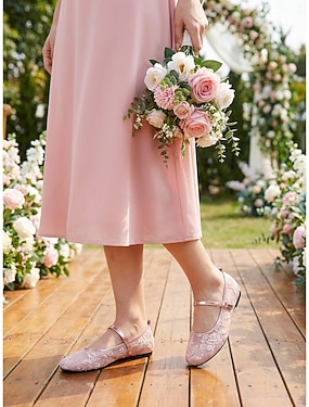 ballerine in pizzo rosa da donna - comode scarpe da damigella per matrimoni in giardino